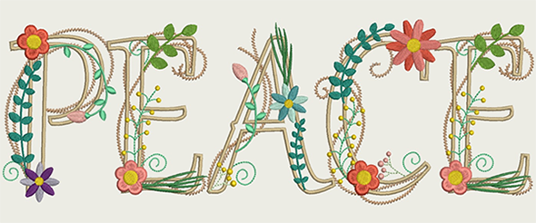 | This smaller version of Peace Word with flowers is designed to fit the Grand Hoop designed for the MC12000 and MC15000. A template is provided so you can position the design and mark the center crosshair. | ||